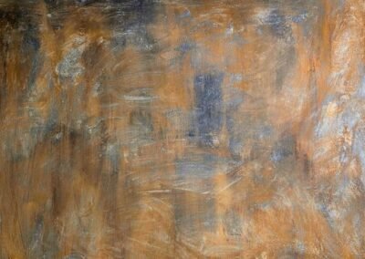 This captivating wall finish evokes the raw beauty of aged metal with a sophisticated twist. Featuring a harmonious blend of deep bronze, smoky blue-grey, and subtle golden undertones, the surface mimics the natural oxidation of iron, offering an industrial yet refined aesthetic. The textured brushstrokes create movement and depth, making this finish ideal for accent walls in lofts, studios, or modern classical interiors where bold character meets timeless charm.