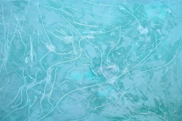 This decorative surface features a refreshing turquoise base with fine, flowing white lines that create a subtle abstract rhythm. The layered tones and gentle movement offer a serene yet modern atmosphere, ideal for stylish and minimal interiors.