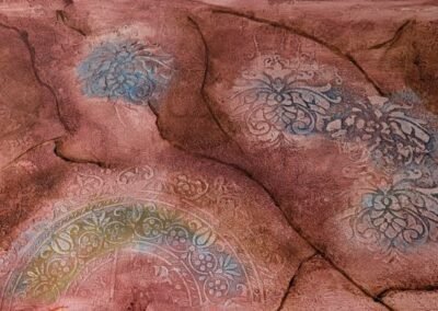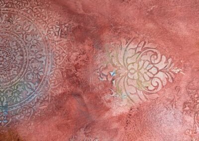 Add character to your walls with stencilled patterns applied directly onto cement or plaster surfaces. These decorative finishes give depth, texture, and a custom aesthetic, combining traditional craftsmanship with modern durability.